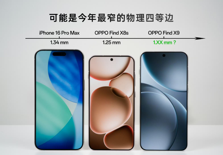 近日,OPPO正式公布了Find X9标准版的正面屏幕设计细节,这款新品以“黄金R角、黄金尺寸及最窄物理四等边”为核心卖点,引发了数码圈的广泛讨论。据悉,该机不仅实现了近乎完美的边框控制,其屏幕长度还略小于iPhone 16 Pro Max,在视觉体验与握持手感之间找到了精妙平衡。